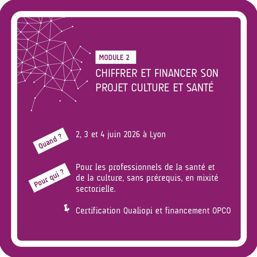 Cette formation s’adresse aussi bien aux professionnels du monde de la santé (sanitaire et médico-social) qu’à ceux du secteur culturel et artistique souhaitant acquérir ou approfondir leurs compétences techniques en matière de recherche de financements et de montage budgétaire appliquées au développement de projet culturel dans un établissement de santé.