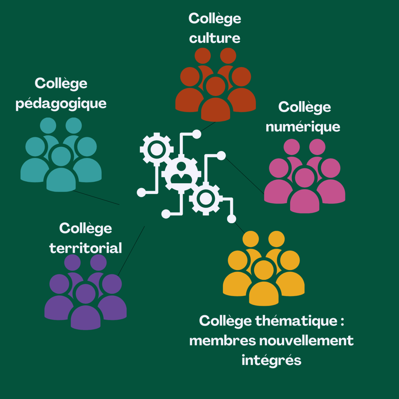 Une équipe projet dédiée assure la coordination du projet et l'accompagnement des contributeurs, appuyée par un comité éditorial réunissant réseaux et acteurs issus de 5 collèges (culture, éducation, numérique, territoires et communautés spécifiques), garantissant diversité des regards et équilibre de représentativité.