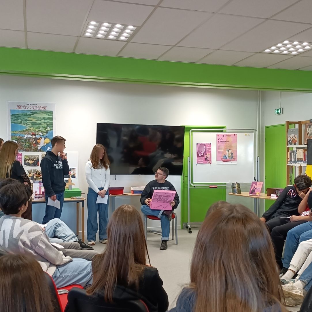 La journée s'est ensuite poursuivie au lycée Claude Lebois de Saint-Chamond, en présence du vidéaste Fabrice Finotti et de la comédienne Cécile Vernet. Après la restitution théâtralisée de leur texte collectif, les élèves de 2nde ont enrichi ce temps de rencontre d'une série de questions pertinentes et originales. Une après-midi plein d'émotions, qui se clôt avec un goûter préparé par la classe.