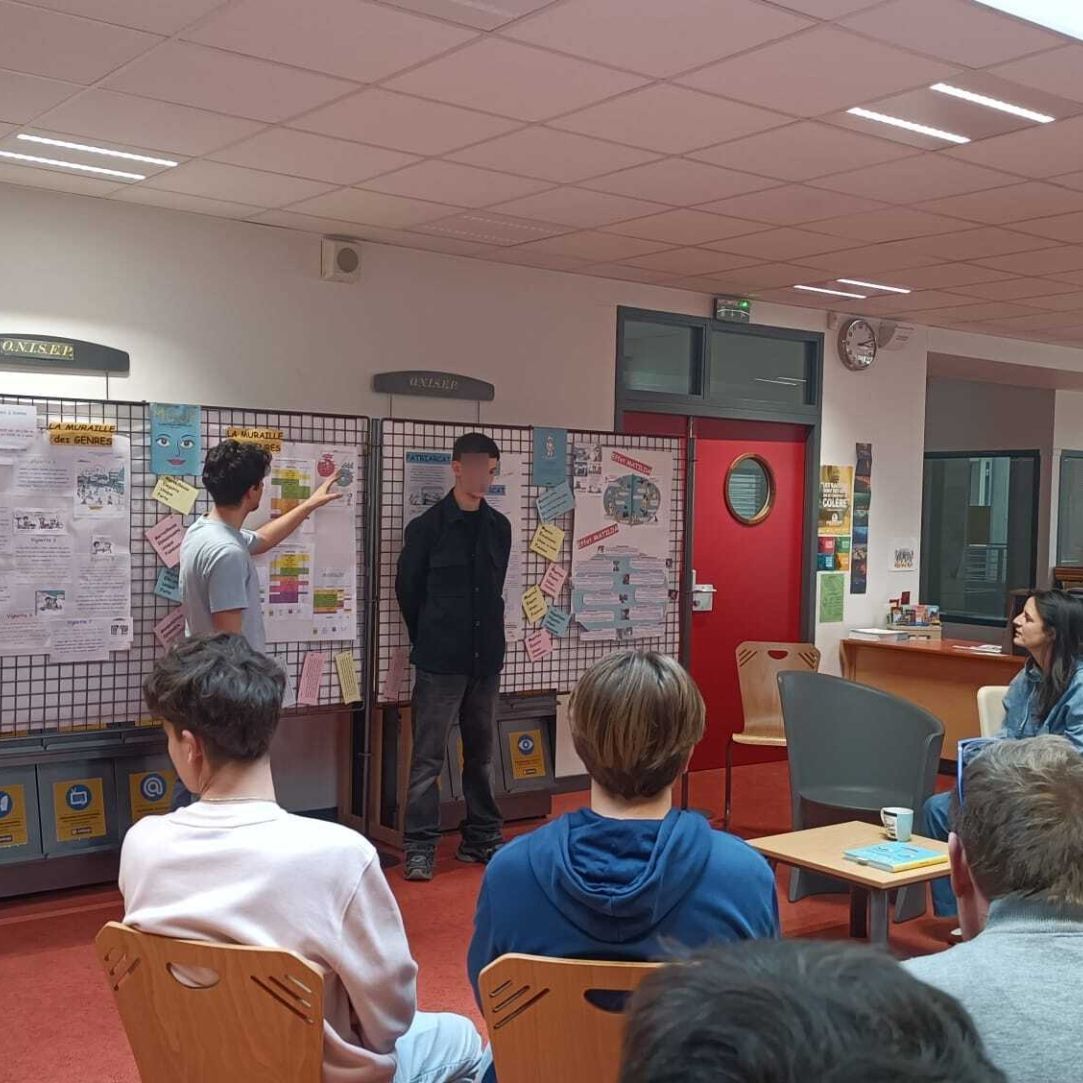 La tournée de Marie Dubois s'est clôt par une généreuse rencontre au lycée professionnel Tony Garnier de Bron. Les élèves de 1ère Bac pro Géomètres ont accueilli l'autrice avec une belle représentation théâtrale, avant de lui présenter leurs recherches et exposition autour des inégalités de genre. Marie Dubois a été impressionnée par le travail pointu des élèves. Bravo à elles et eux pour leur vive implication dans ce projet !