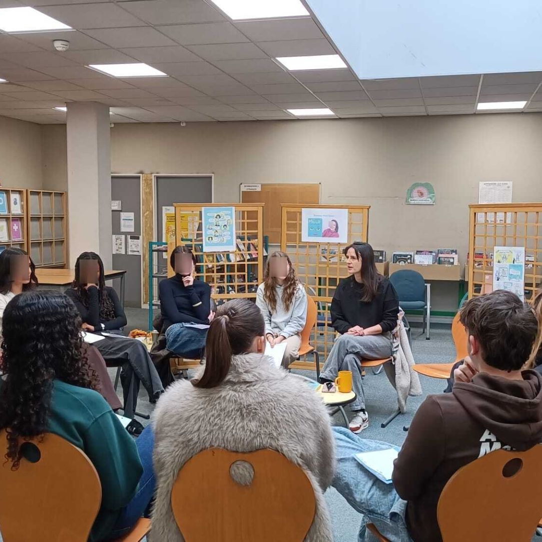 Les 2nde du lycée de La Matheysine de La Mure ont accueilli Marie Dubois à la médiathèque du village, La Matacena. Une belle rencontre, qui a débuté par deux représentations théâtrales présentées par les élèves et s'est poursuivie par un riche temps d'échanges autour des questions de discrimination de genre. Merci aux enseignantes et aux élèves pour leur implication, et à La Matacena pour ce cadre de rencontre chaleureux !