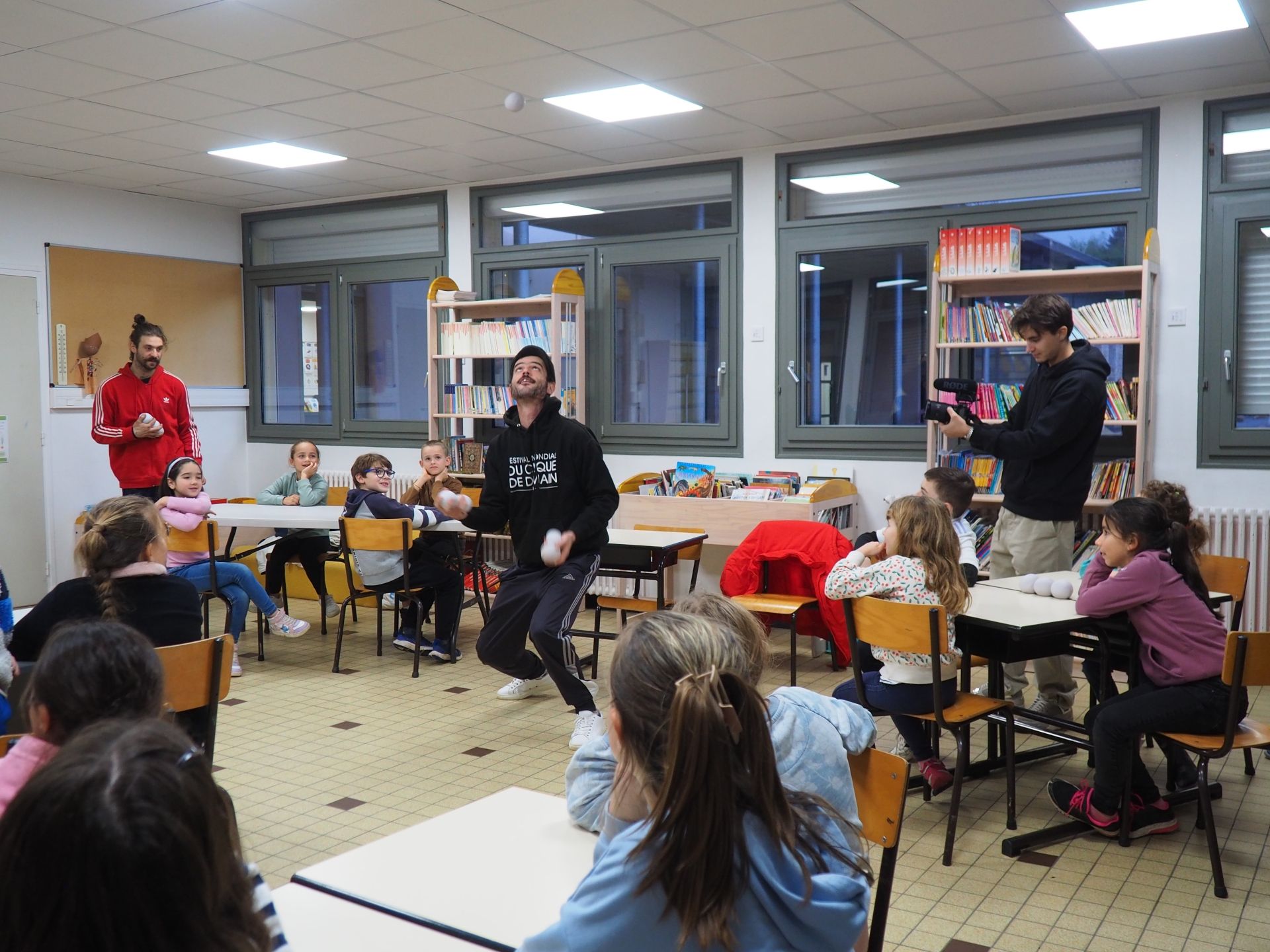 En novembre 2025, les arts du cirque contemporain ont investi les écoles du territoire : du CP au CM2, 12 classes réparties dans 7 écoles ont vécu une immersion artistique exceptionnelle aux côtés des artistes du collectif Merci LaRattrape!