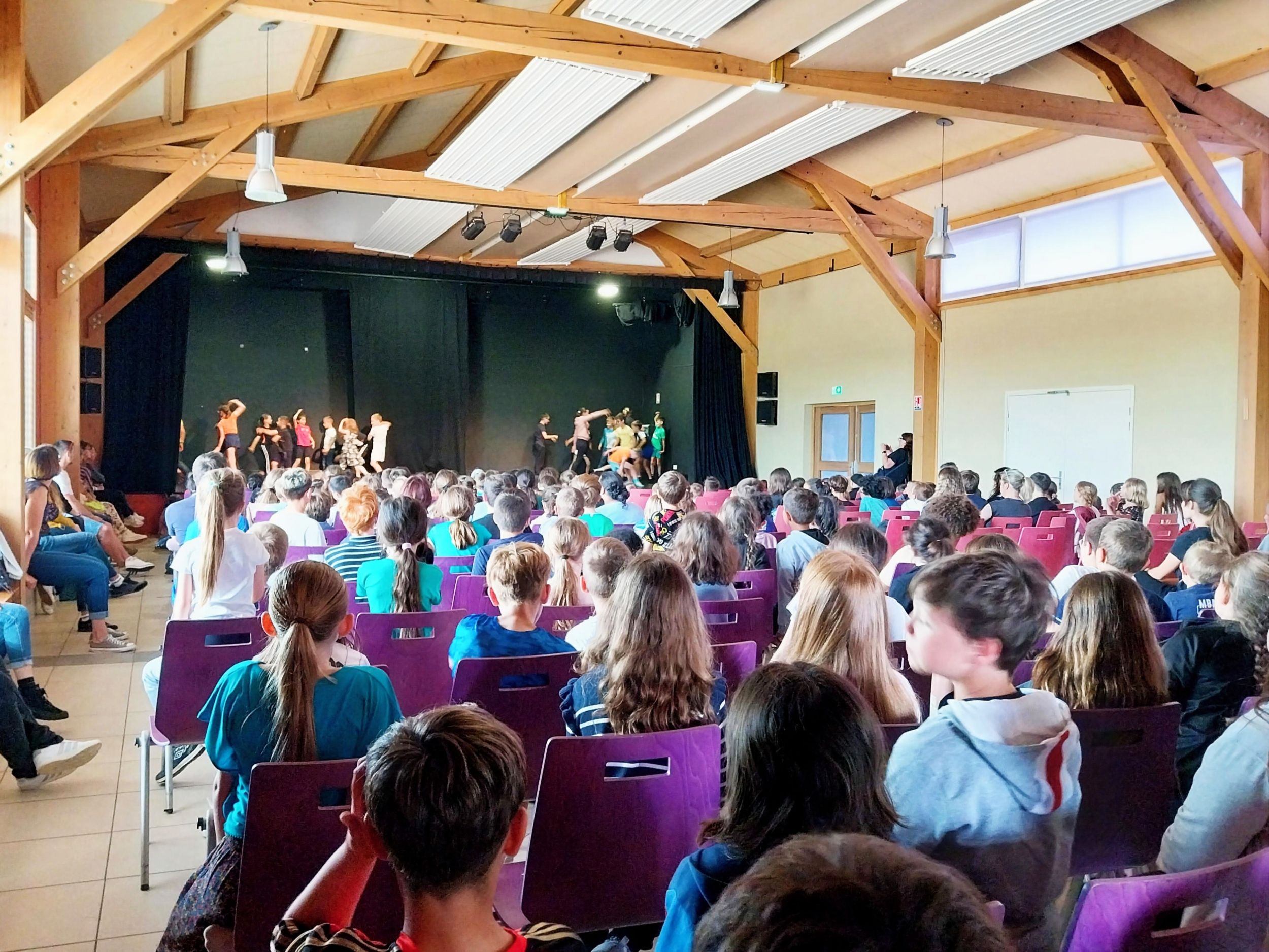 Le projet s’est achevé lors d’une journée de restitution partagée lors de laquelle les élèves ont pu se montrer le fruit de leur création en atelier ; partager des temps d’improvisation dansée avec les artistes professionnels de la compagnie ; participer à des ateliers croisés autour du corps en mouvement et de la danse contemporaine ; et assister à un spectacle de la compagnie Dynamo.