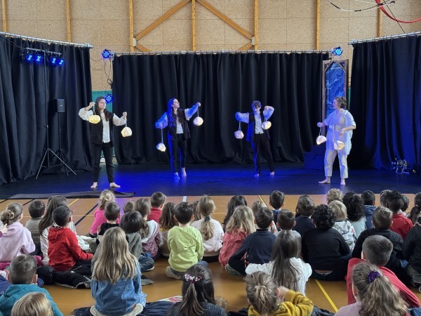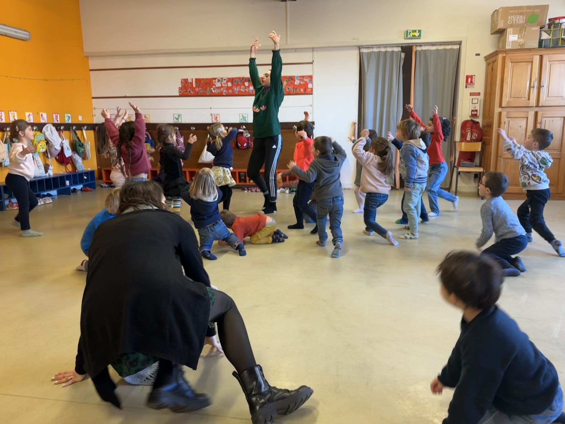 Le projet a permis à 238 élèves des écoles de Saint-Maurice-sur-Dargoire et Saint-Didier-sous-Riverie de découvrir la danse contemporaine avec la compagnie Ancolie. Après une première immersion grâce au spectacle Minuit, les classes ont bénéficié de 9 heures d’intervention chacune avec les danseuses Clotilde Tholly et Axelle Reynaud. Les élèves, de la maternelle au CM2, ont exploré le mouvement à travers des échauffements, improvisations, jeux corporels et débuts de chorégraphies. Le travail s’organisait autour des thèmes de la nature et de la nuit, invitant les enfants à mobiliser leurs sensations, leurs émotions et leur imaginaire. Ils ont également appris à danser ensemble, à écouter le groupe et à construire une création collective. Le projet s’est conclu par une restitution commune réunissant les deux écoles, puis par des présentations dans chaque établissement devant les familles.