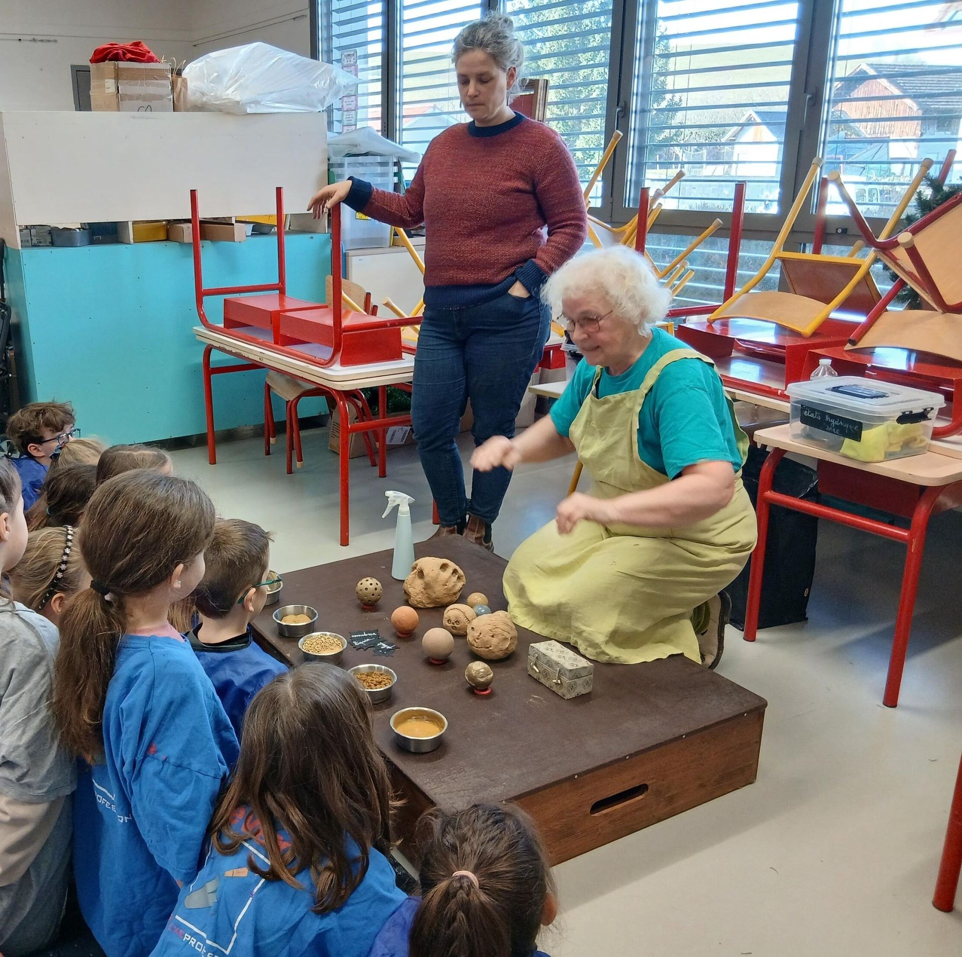 Trois classes ont participé à des visites du patrimoine naturel et bâti menées par l'association Le Pic Vert. Les enfants ont ainsi pu appréhender en extérieur la terre, élément constitutif du sol, et aussi matériau de construction dans des bâtisses en pisé.
