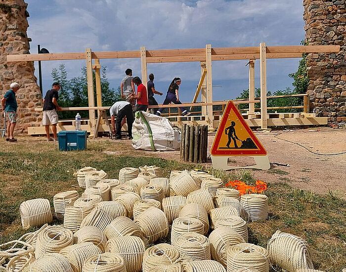 Concevoir une oeuvre éphémère tout en prenant en compte les aspects liés à son usage, son accessibilité au public, voire, pour certains, des considérations écologiques. . Les participants ont bénéficié de six séances avec Jonathan Pailleux pour aborder les notions d'architecture, les matériaux, la construction, les questions de l’habitat, du patrimoine ou des liens possibles avec le fleuve et le paysage. . Des séances d’ateliers ont ensuite permis à chaque groupe d’aboutir à des propositions de projets et maquettes. . Cette première phase s’est achevée le 13 décembre 2024 avec la présentation des différents projets devant un jury de professionnels. Deux d’entre eux ont été retenus. . Un temps d'atelier partagé a permis de réunir les deux projets . la construction a été effectuée en juillet et l'inauguration, en présence des particpants en septembre 2025. La cabane restera en place une année complète.