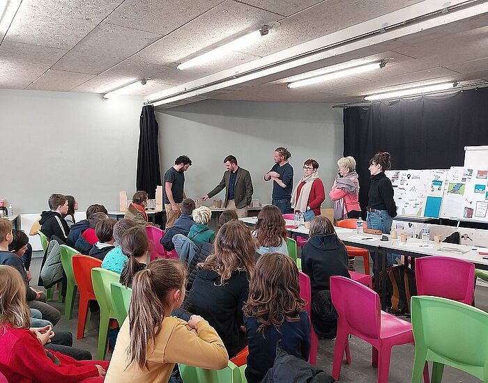 Cette première phase s’est achevée le 13 décembre 2024 avec la présentation des différents projets devant un jury de professionnels. Deux d’entre eux ont été retenus, un sur chaque site choisi par nos architectes en herbe : l’esplanade de la Tour et la place du Guet.