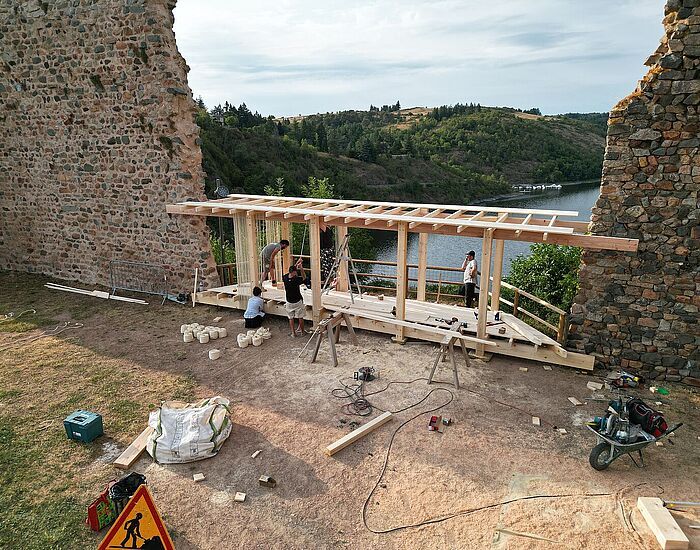 La faisabilité de leur construction sur les plans technique, de sécurité et financière a été étudiée minutieusement et les différents partenaires du projet ont pu valider la construction du projet légèrement modifié esplanade de la Tour. La construction a eu lieu mi juillet 2025 et la cabane restera en place jusqu'en septembre 2026