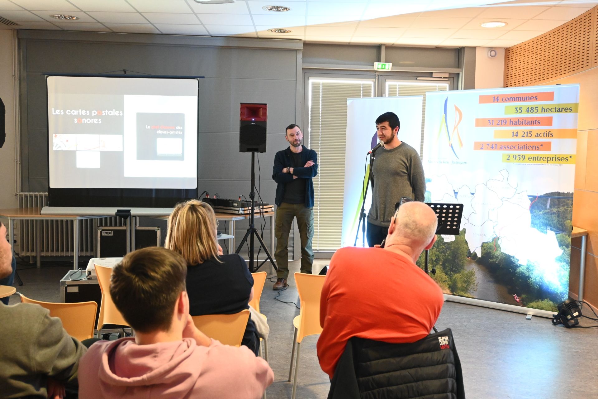Fish le Rouge, artiste intervenant a présenté au groupe d'élèves son travail et retracé l'histoire des musiques urbaines lors de leur première rencontre. Il a également invité les élèves et les habitants du territoire à un concert et un atelier d'écriture en médiathèques. La rencontre artistique s'est également faite grâce au partenariat construit avec le Rhino Jazz Festival et la possibilité d'installer un évènement de sa programmation au coeur d'un établissement industriel du territoire, entrant donc en résonnance avec l'apprentissage des élèves ayant participé au projet.