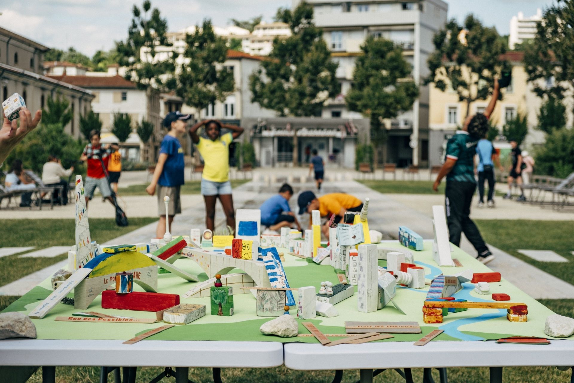 Les artistes ont fait entrer les habitants dans leurs univers via des ateliers de pratique artistique tels que de la broderie, les balades dessinées, un stage de gamalan, la création d'une ville en kit... Les habitants ont également été invité à participer activement aux restitutions festives proposées par 2 fois par la cie.