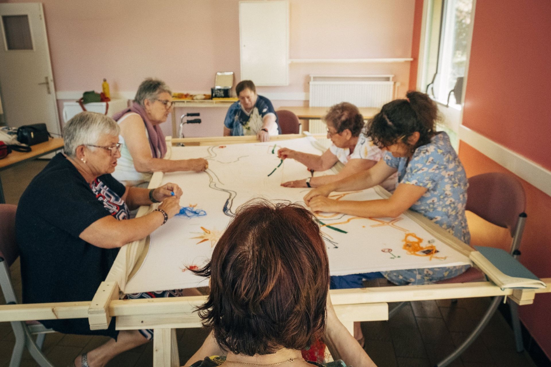 Plusieurs membres de la cie sont intervenus avec chacun des domaiens artistiques propres, du dessin en passant par l'imprimerie, la musique, la broderie ou encore le spectacle vivant. Chaque artiste était invité à travailler dans une démarche de respect des droits culturels. Ainsi chaque habitant a pu partager un bout de sa vie, de ce qui le touche, de ce qui le relie ou l'éloigne des autres. Ce projet visait davantage le vivre-ensemble, la rencontre avec l'autre mais également l'occupation de l'espace public.
