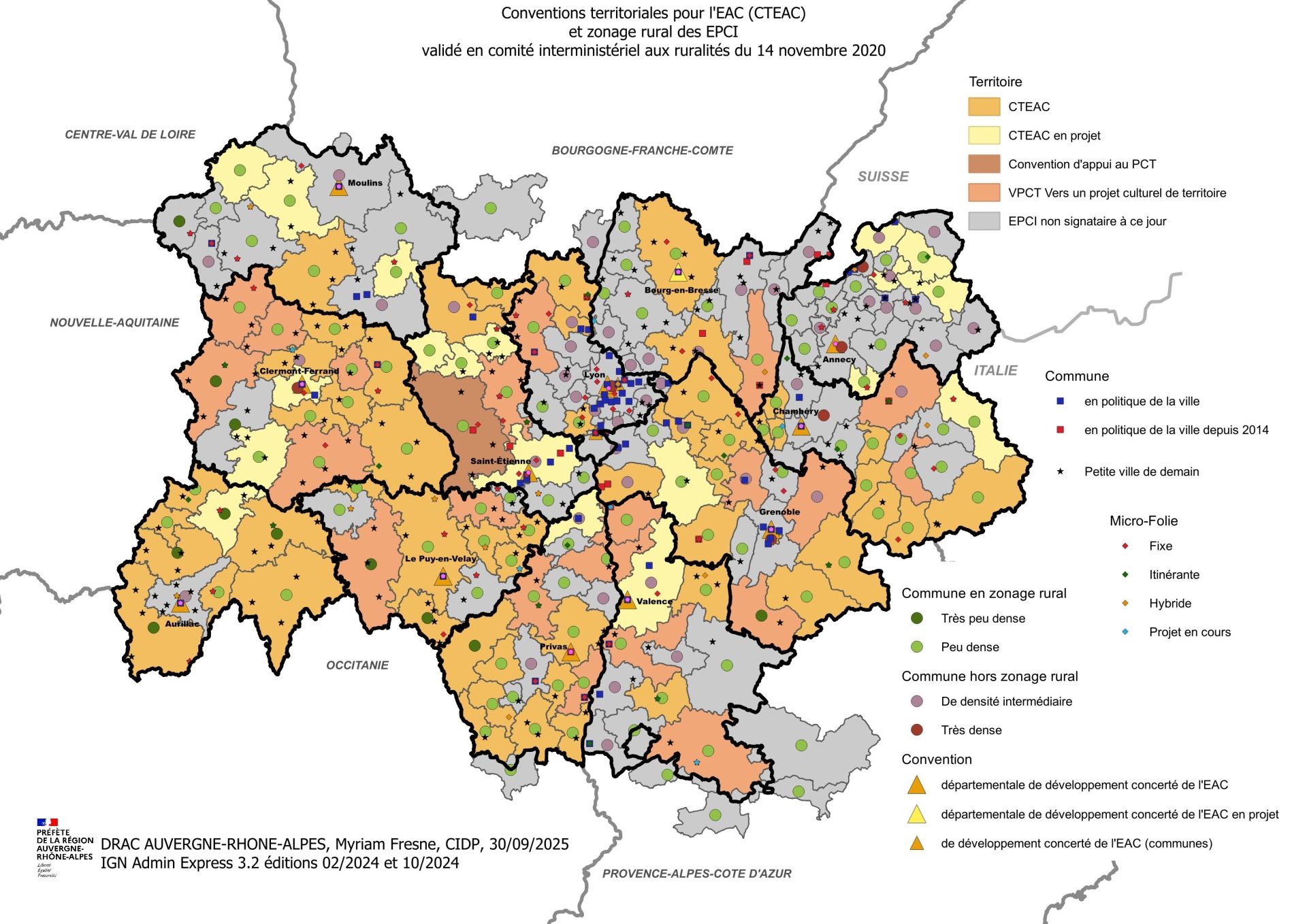 La Direction régionale des affaires culturelles et les services de l'Etat, la Région Auvergne-Rhône-Alpes, les Départements structurent ensemble, depuis plus de 10 ans, le développement de l’action culturelle, du livre et de la lecture et de la valorisation du patrimoine à travers la mise en place de conventions avec les collectivités territoriales.